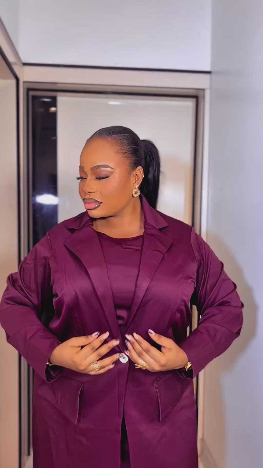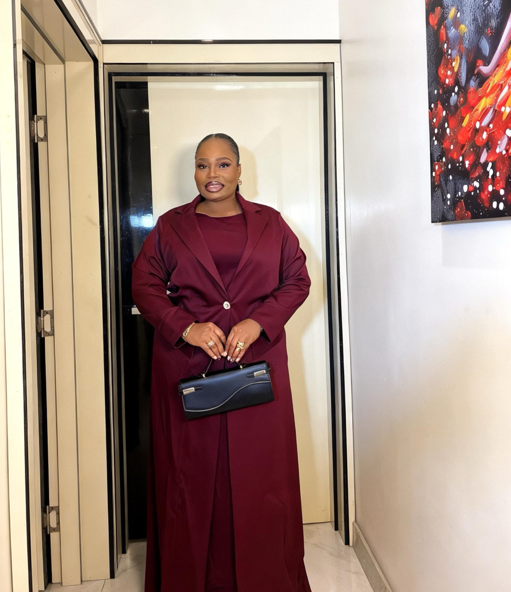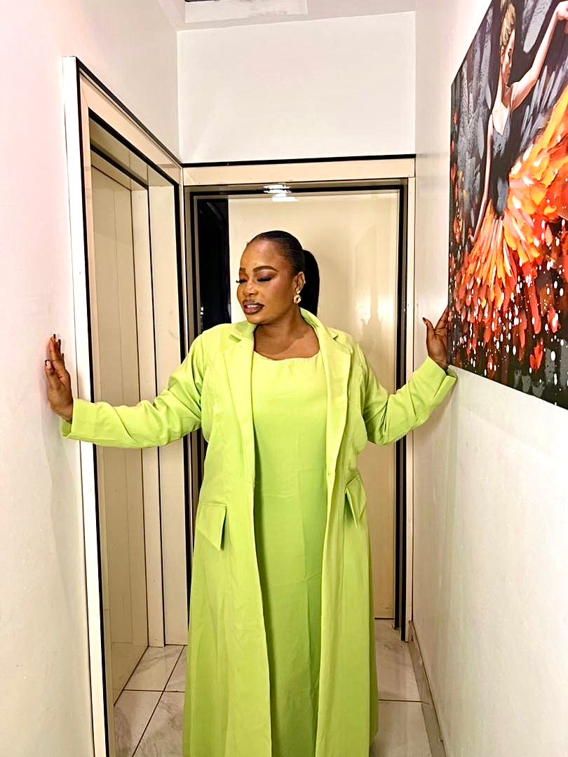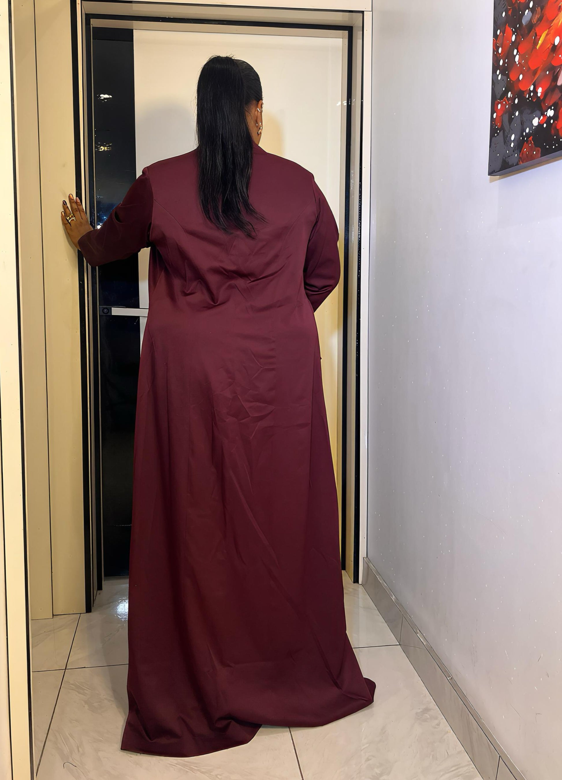 This abaya blazer comes in a standard length of 58–60 inches.